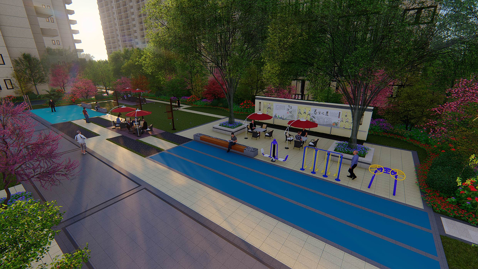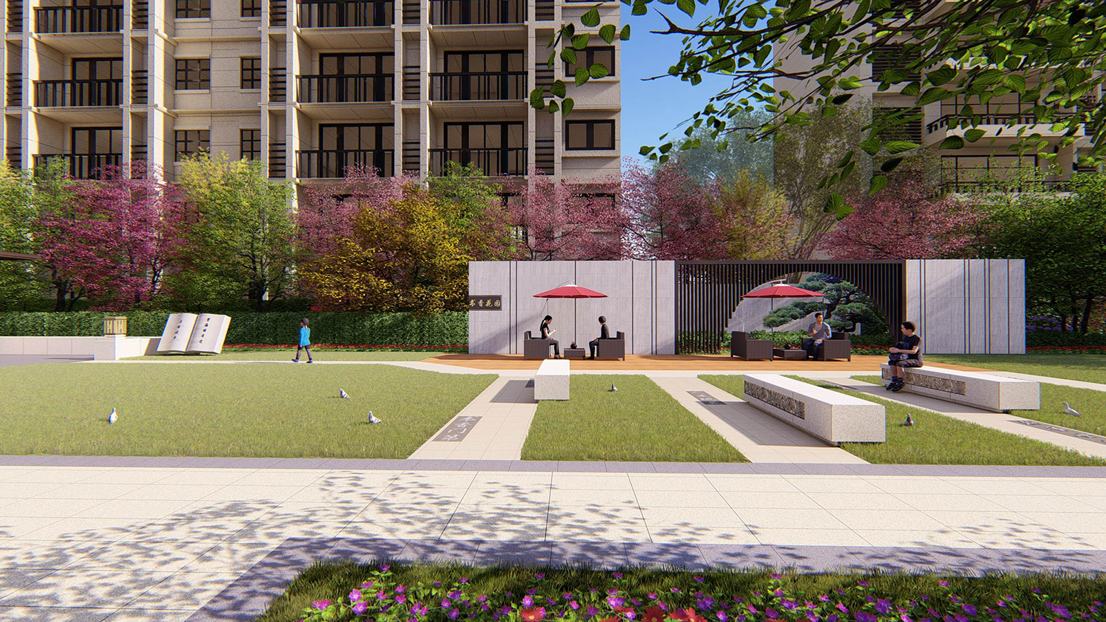 書香主題區旨在為業主創造一個促進鄰里、入學兒童交流、休閑讀書空間,休閑的讀書平臺,打造陽光書房、書香院落,打造宅前、窗前雅致空間 。一方陽光,讓你卸下一身的匆忙與疲憊。