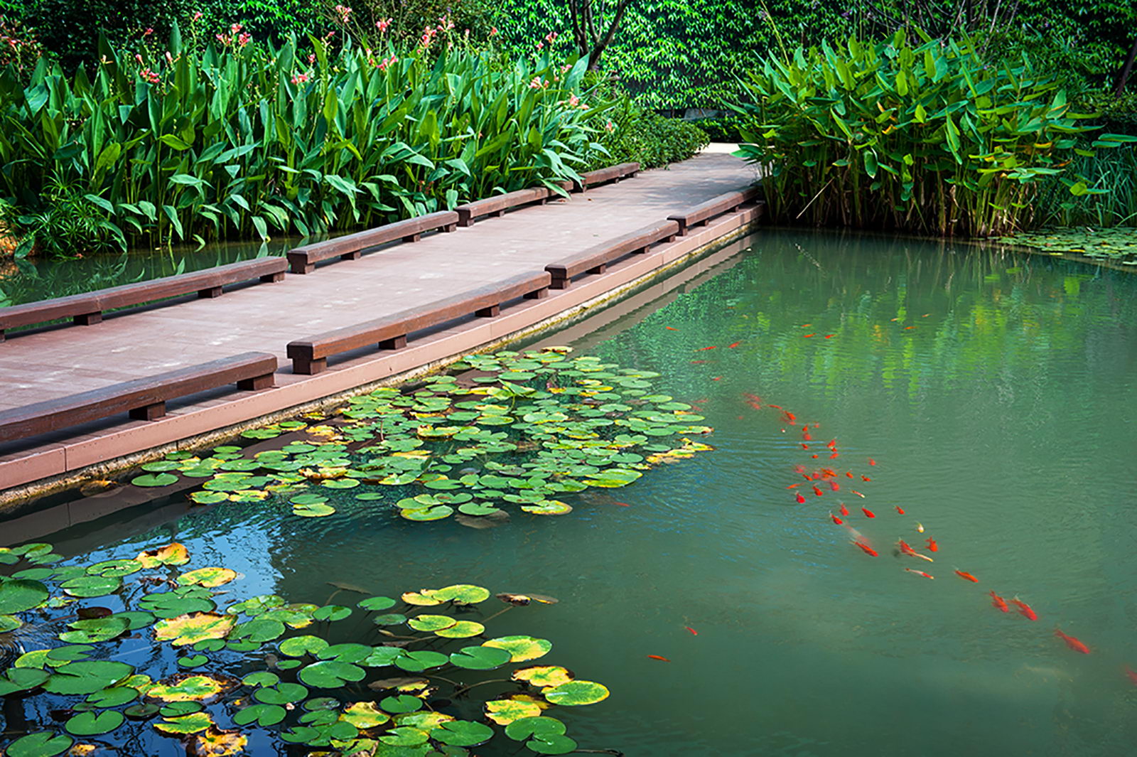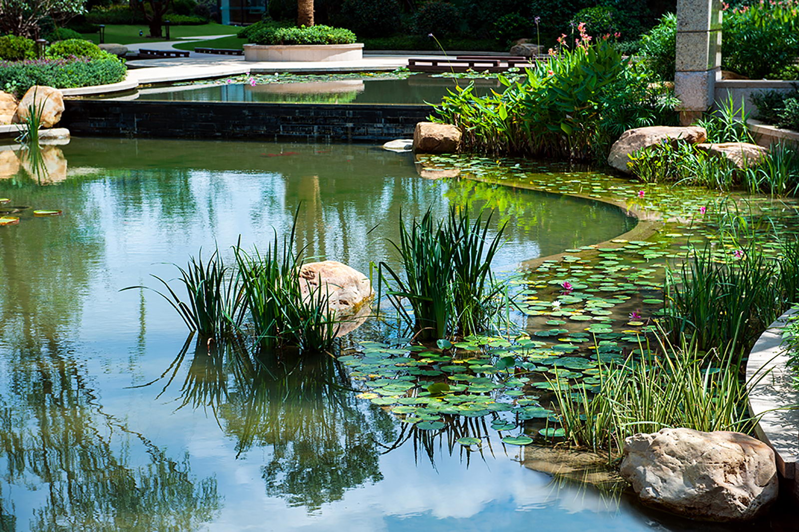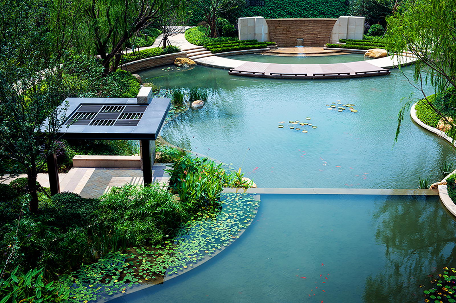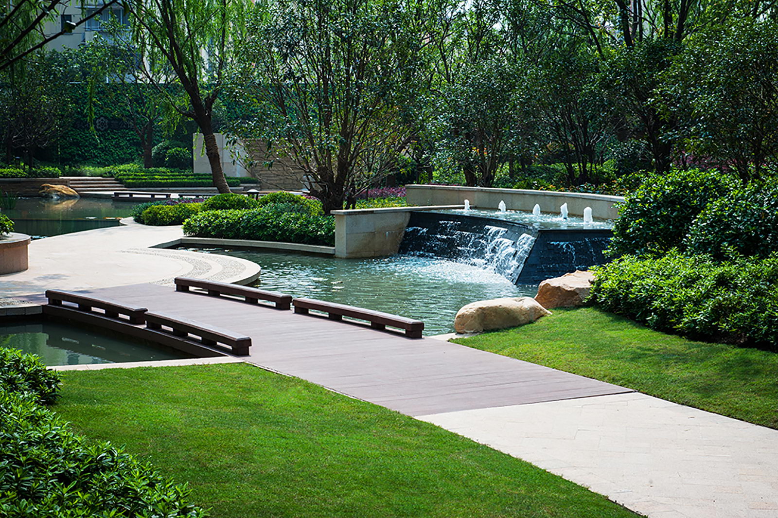 整個(gè)小區(qū)的景觀設(shè)計(jì)在當(dāng)時(shí)借鑒日本人居設(shè)計(jì)思想,樓盤(pán)的總體定位即以高雅、藝術(shù)、自然共生為理念,融入精巧設(shè)計(jì),對(duì)景觀細(xì)節(jié)進(jìn)行了一一呈現(xiàn),疊石理水,以“水岸共生、居隱書(shū)香”為主題,構(gòu)筑蘊(yùn)涵傳統(tǒng)園林的空間布局和現(xiàn)代園林精華的景觀環(huán)境。
