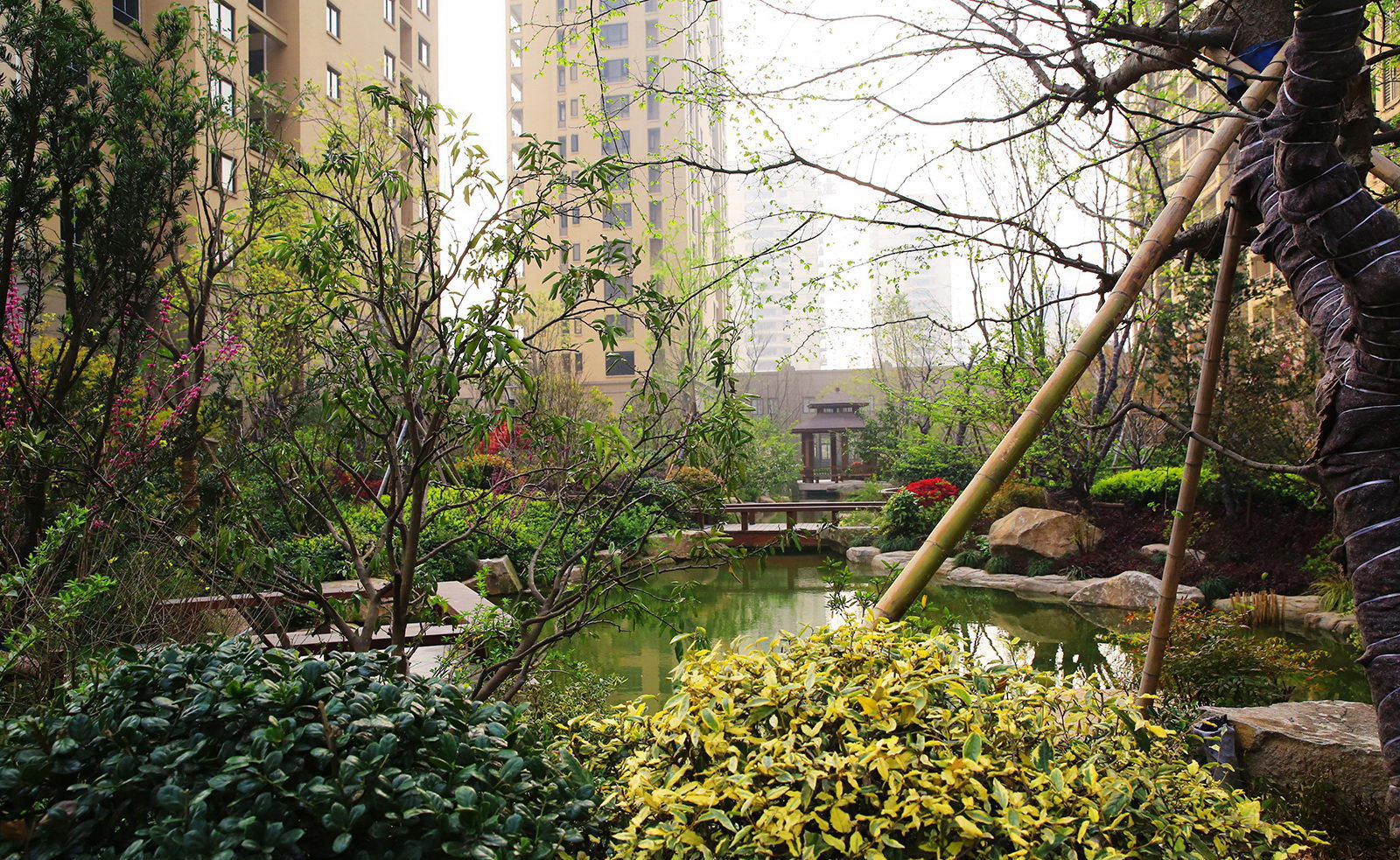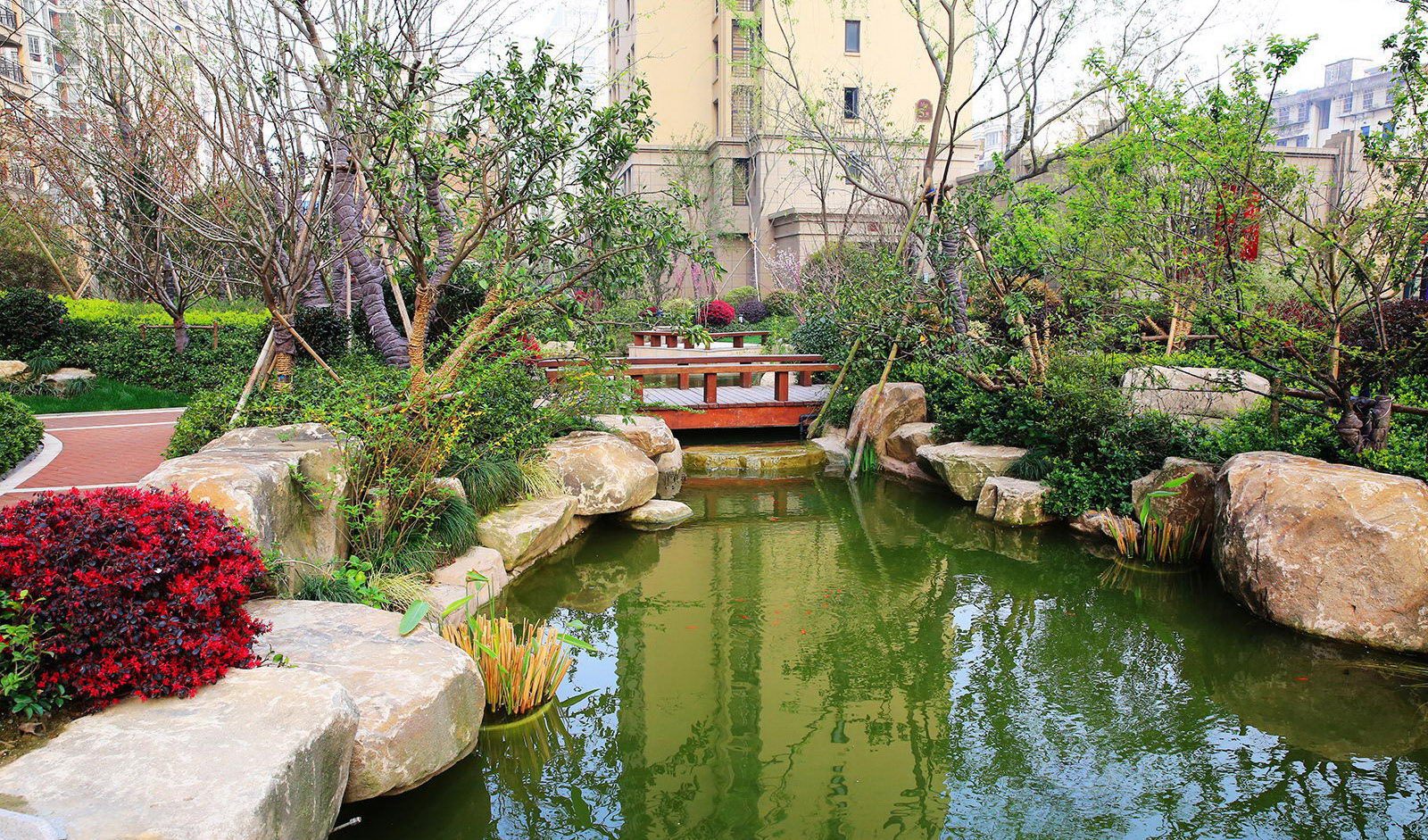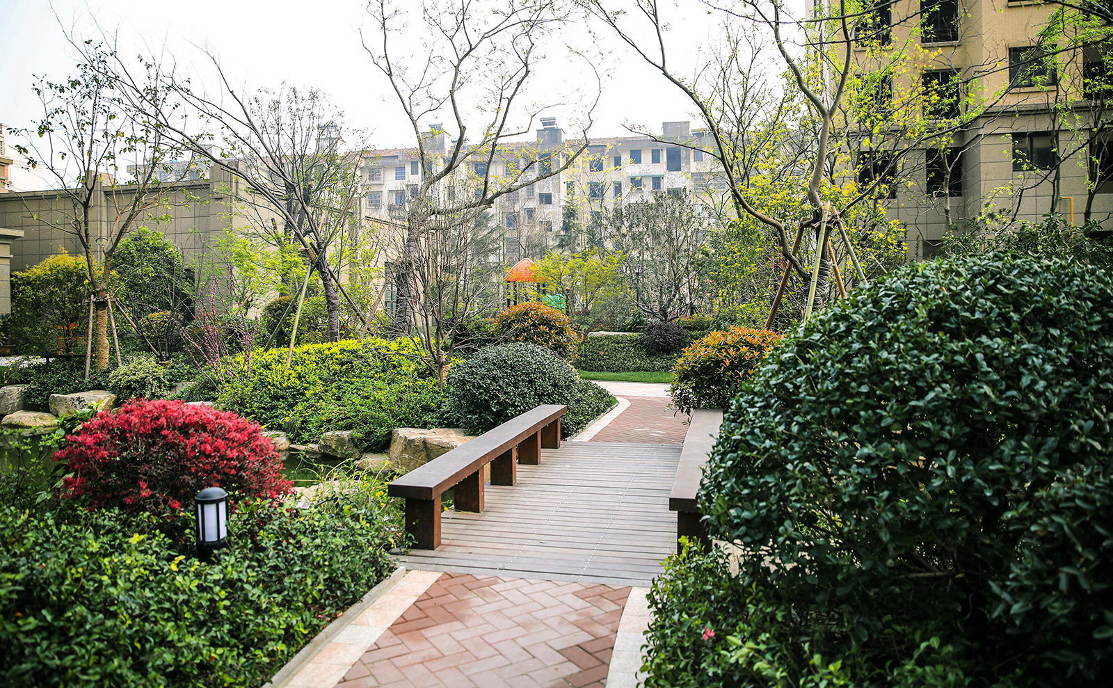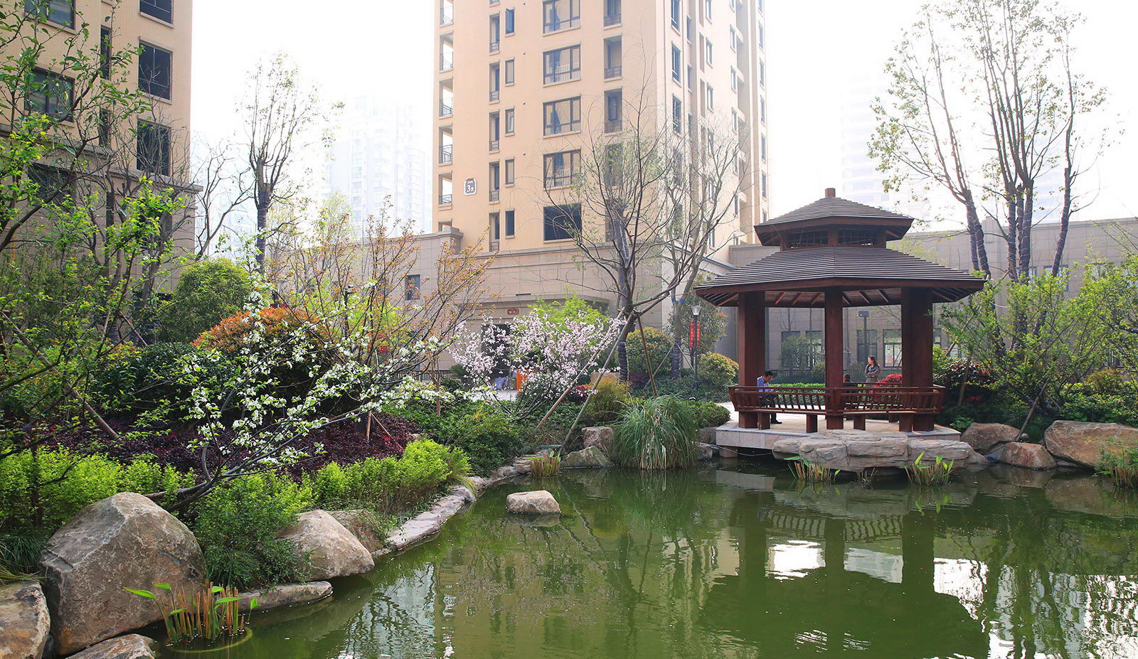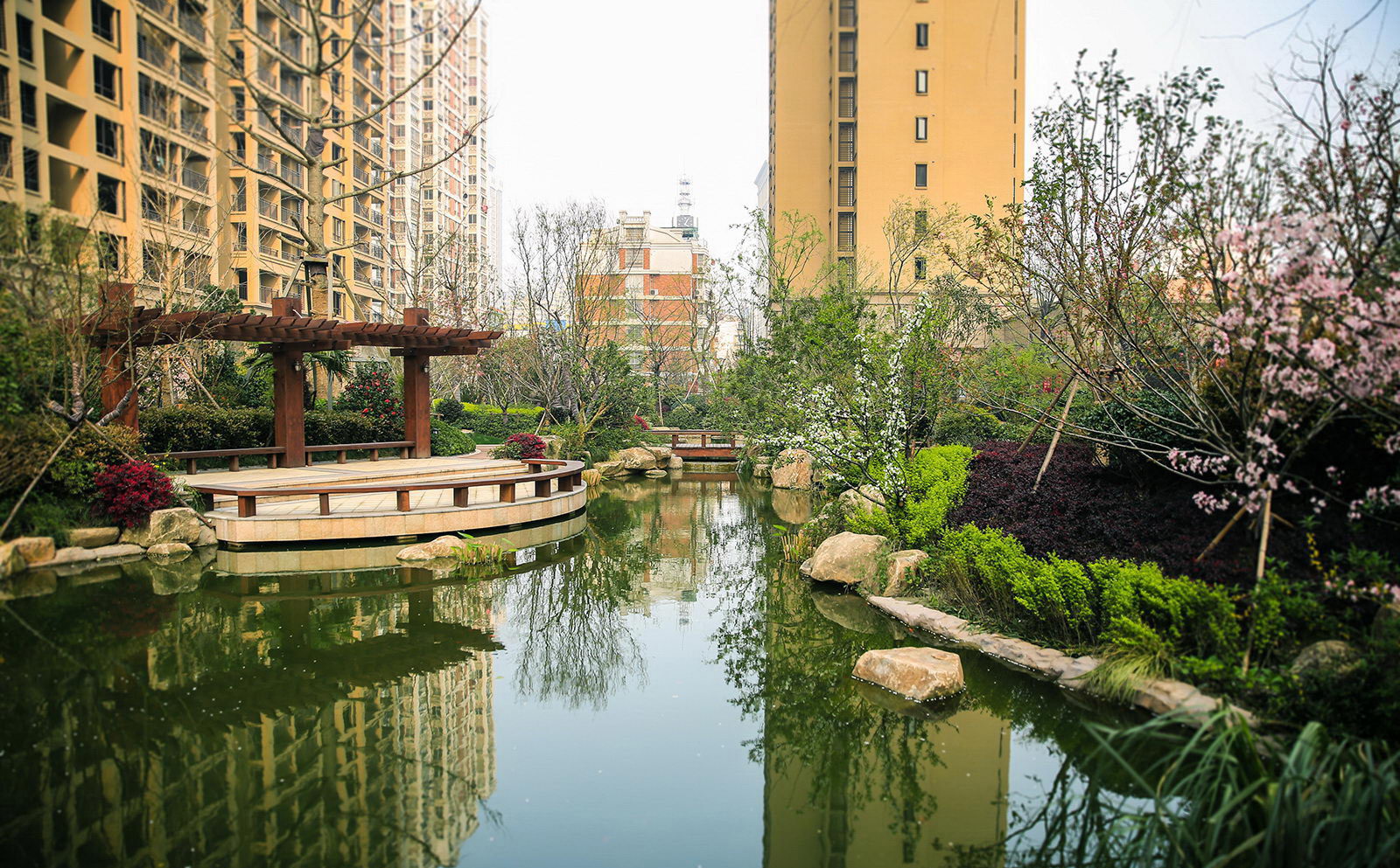 清新淡然,婉約的詩境里是對蕭山人日常生活的輕柔敘述。對學林尚苑的設計,再新古典的體系下,項目在其憑借天然的學區優勢,人文優勢定調蕭山都市學府之外,我們更需要給業主描繪的是一幅水逸江南的輕松生活氛圍,水脈即是文脈,精選的置石,亭、廊尺度相宜,特別是對植物的選樣上,更是一次次的優選,在自然的境界上更追求枝條的舒展度,生活之中花木扶蘇,人生境界自然從容。