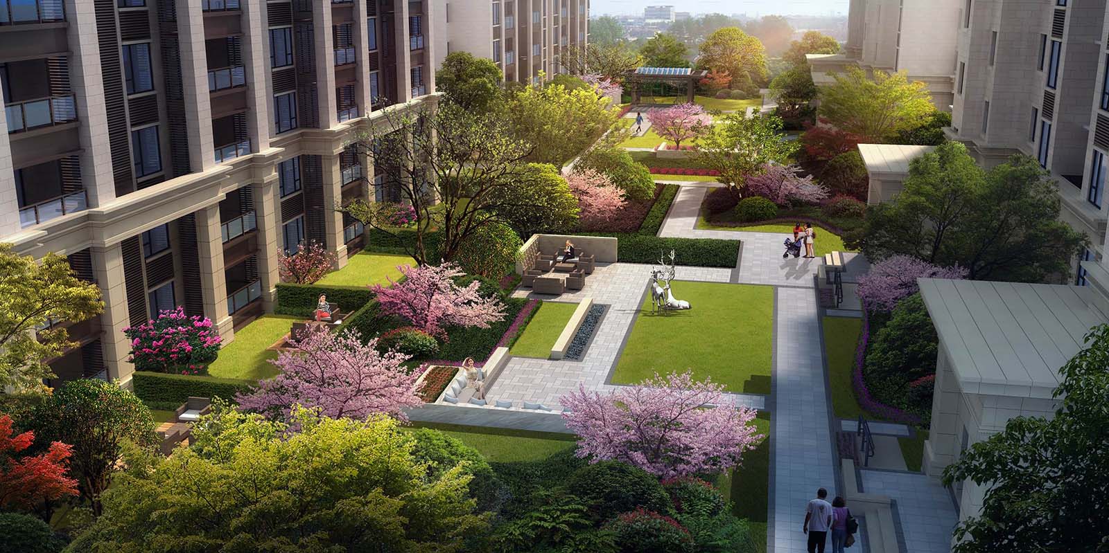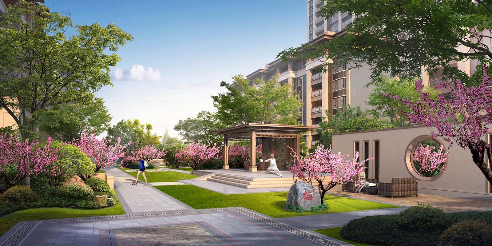 花園洋房區(qū)汲取江南園林坊巷精髓,采用五進(jìn)三坊六巷的歸家秩序,“疏影橫斜水清淺,暗香浮動(dòng)月黃昏。”坊巷花開,可緩歸矣。