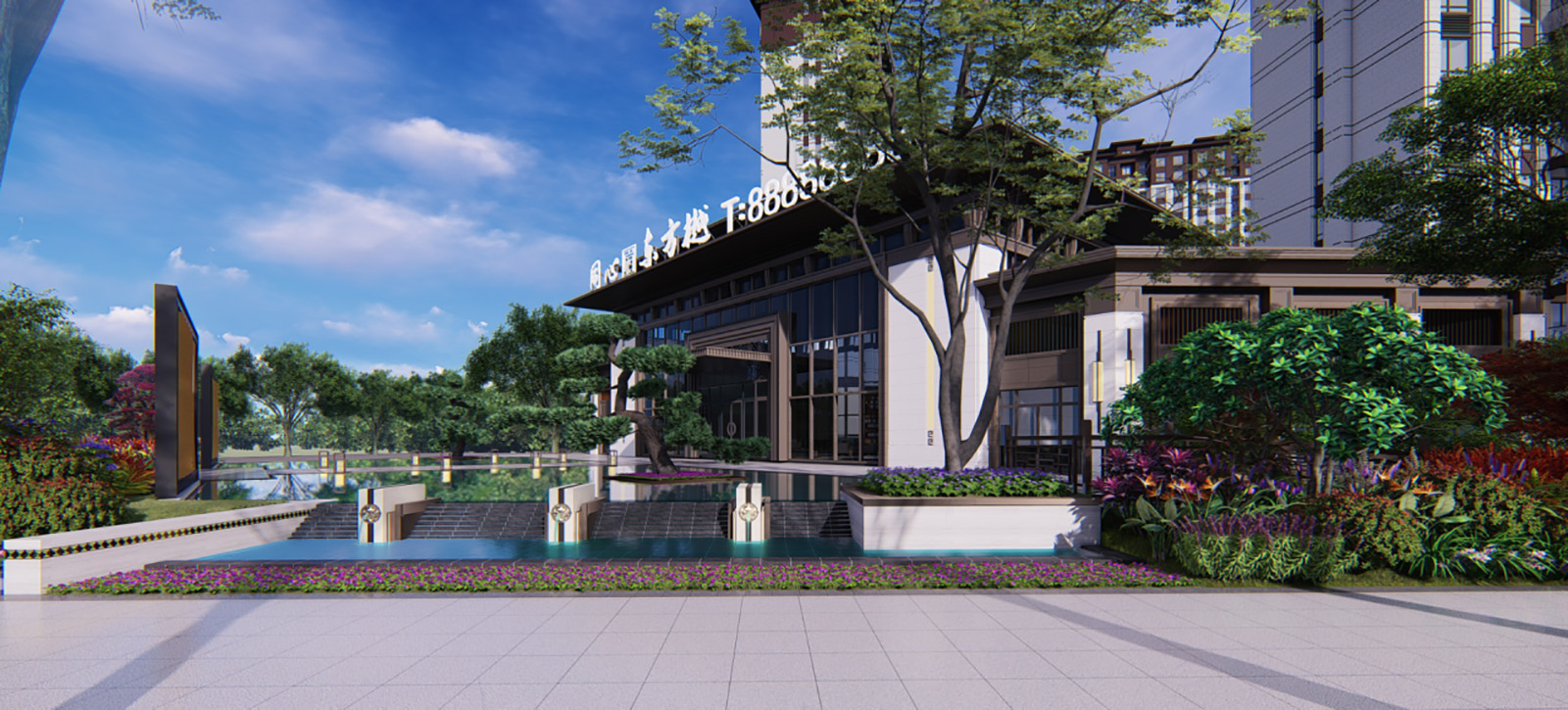 售樓部?jī)?nèi)望出如身居山川秘境,氣象萬(wàn)千,胸有丘壑,目存山河。