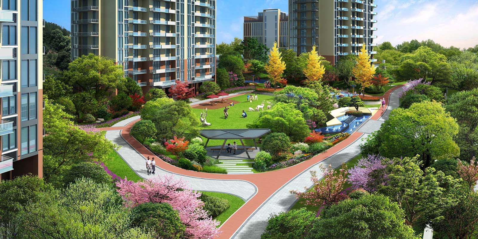 中心區(qū)域全天光照,陽光充足,設計陽光大草坪舒緩身心,鏡面水景洗心、溫潤,健身跑道鏈接三大主題花園為業(yè)主創(chuàng)造一個恣意放松、幸福休閑的愜意空間。