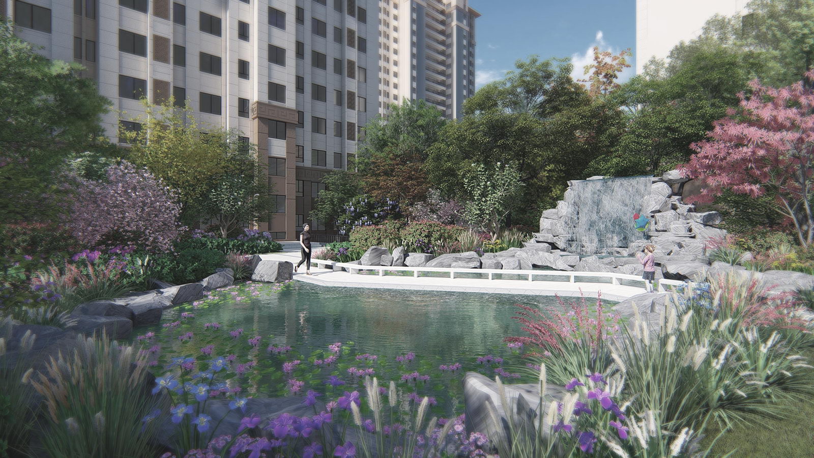 山水園,水平如鏡,紅荷菡萏,